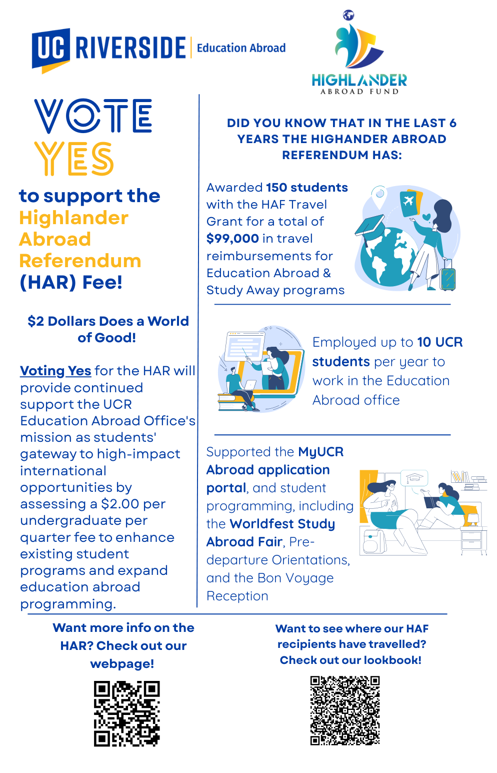 Vote YES on the Highlander Abroad Referendum (HAR) fee before May 2, 2025.