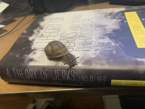 Eric’s pet garden snail, Mermaid, exploring his most recent book.