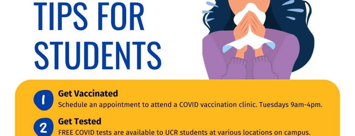 Free COVID tests are available to all UCR students (with or without UC SHIP) at various locations around campus, including: