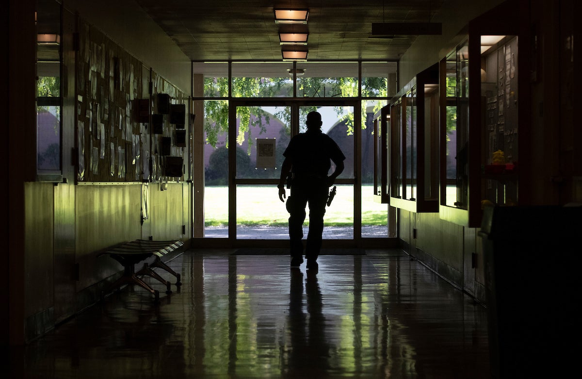 On a recent morning, police Officer Brandon Anderson patrolled an empty campus, comparing the quiet to winter break or a holiday.