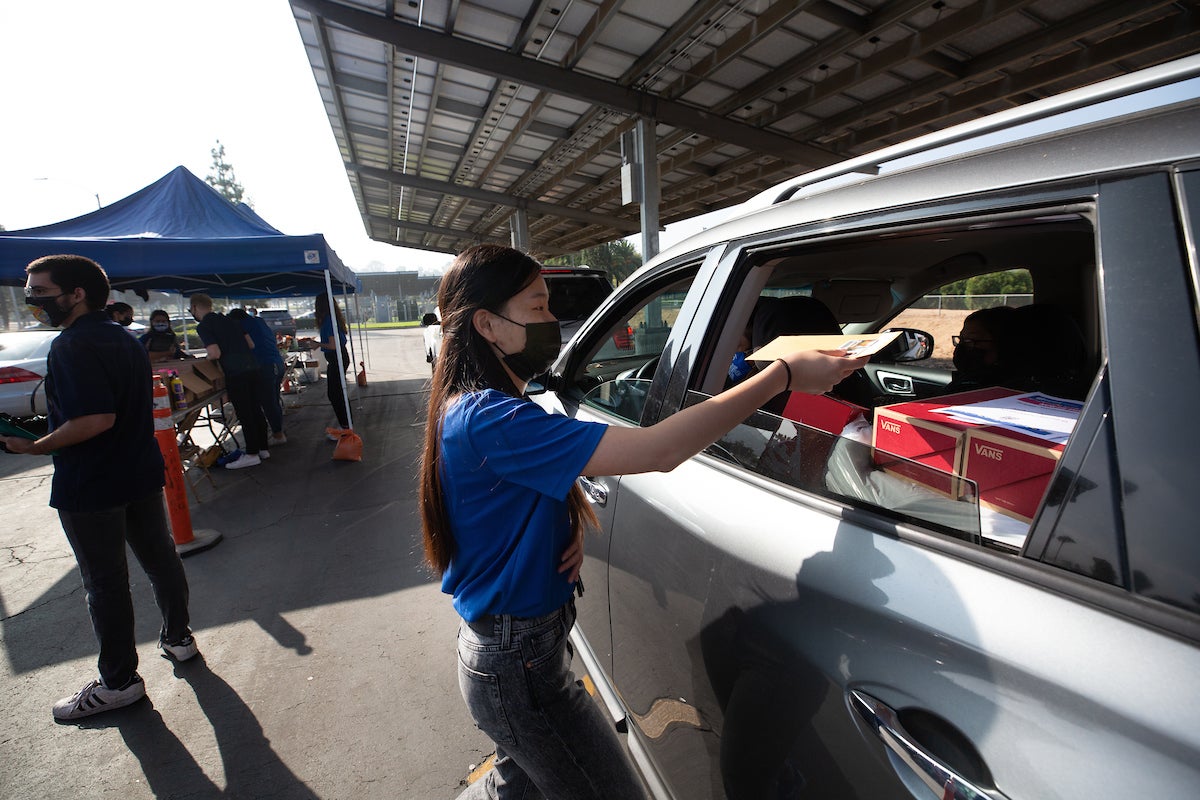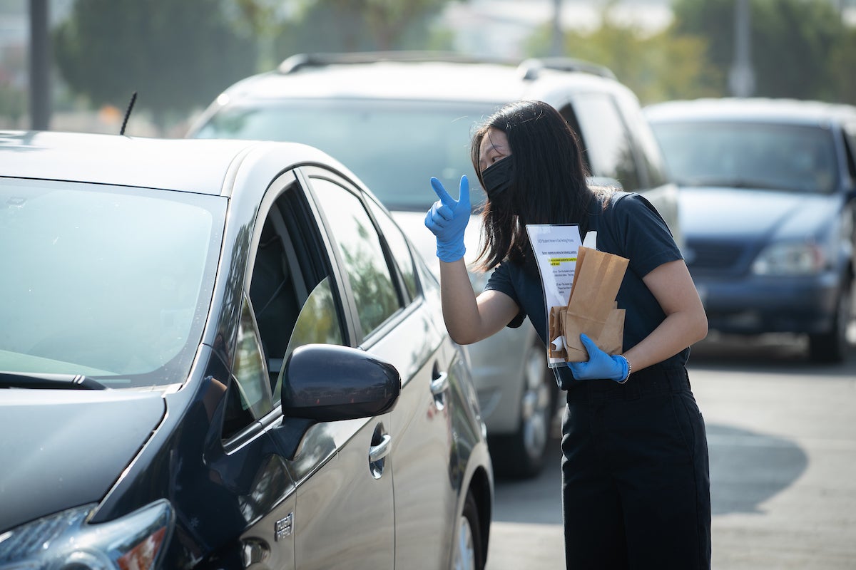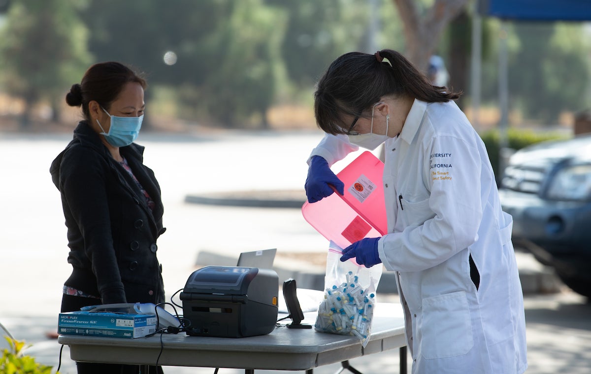 Katherine Borkovich, professor of Microbiology and Plant Pathology and divisional dean of Life Sciences, who oversees the on-campus COVID-19 diagnostic lab, stopped by Friday morning to pick up vials to take to the lab’s new location at Webber Hall. She estimated the expanded lab would process about 1,400 samples a day, providing results within 48 hours.