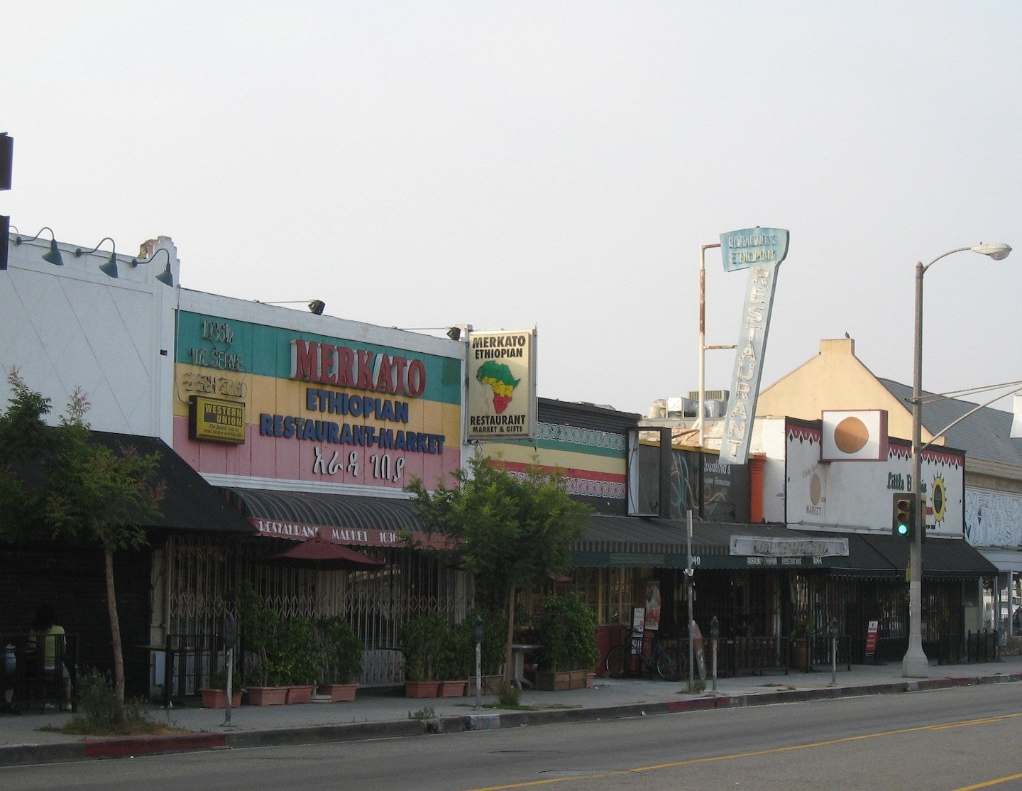 Thumbnail photo: Businesses on Fairfax Avenue in the Little Ethiopia neighborhood of Los Angeles, California by Minnaert on Wikimedia Commons.