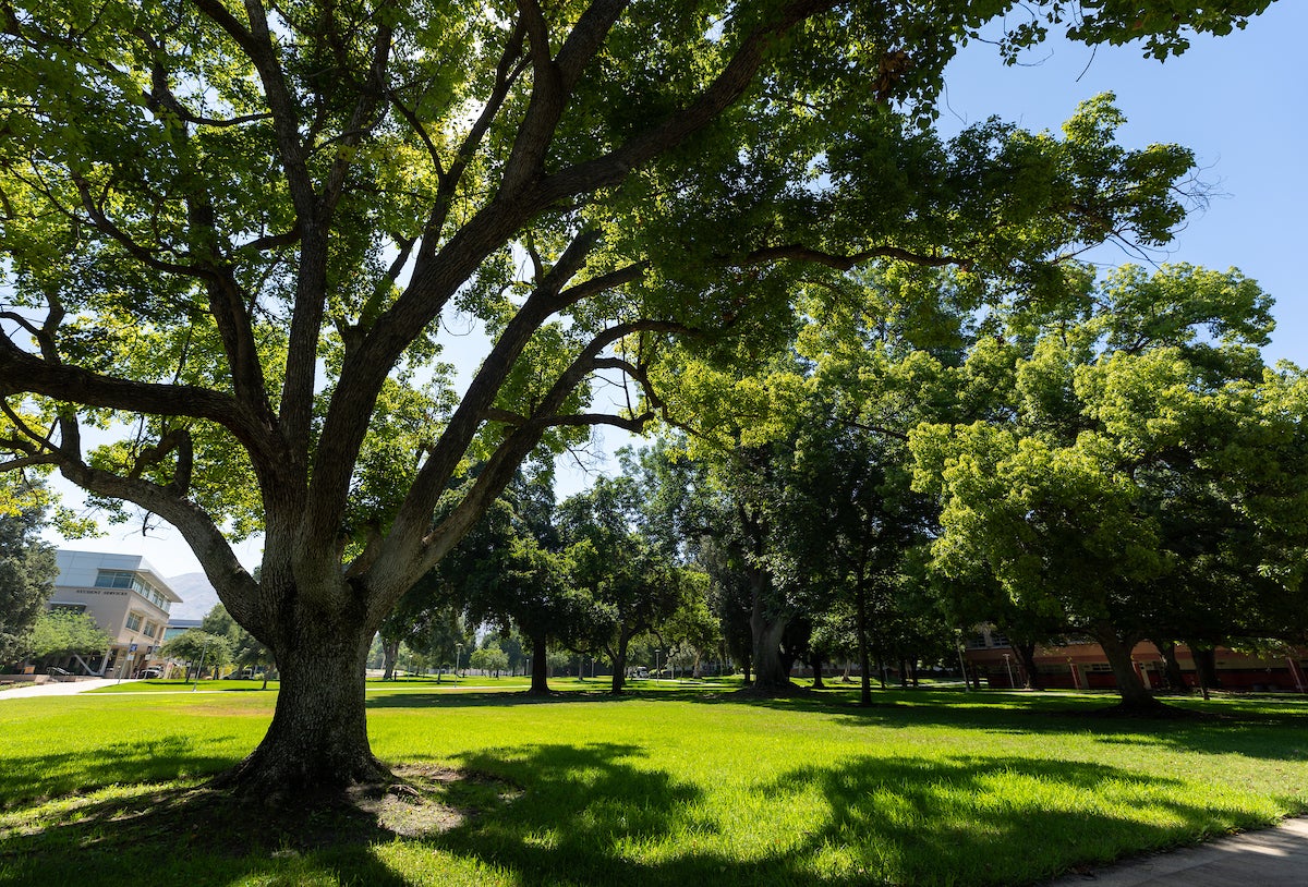 The UC Riverside campus has all sorts of trees, from mature oaks that date to the 1950s to rare varieties such as a single monkey puzzle tree near Olmsted Hall.