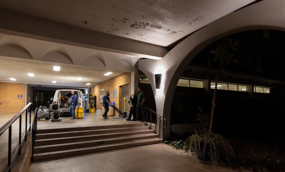 The crews – split into those that work Sunday through Thursday and those working Tuesday through Saturday – methodically clean one building at a time before moving onto the next. Some like the Tomás Rivera Library take a month to clean while others take a few weeks. It takes them two years to cover the entire campus at which point they start all over again.