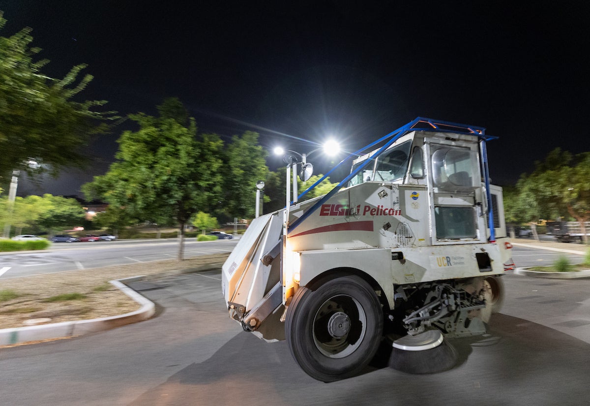 At night, UC Riverside’s campus looks different as the daytime hustle and bustle gives way to a quiet stillness. But behind the scenes, a busy group of employees is responsible for keeping vital operations running.