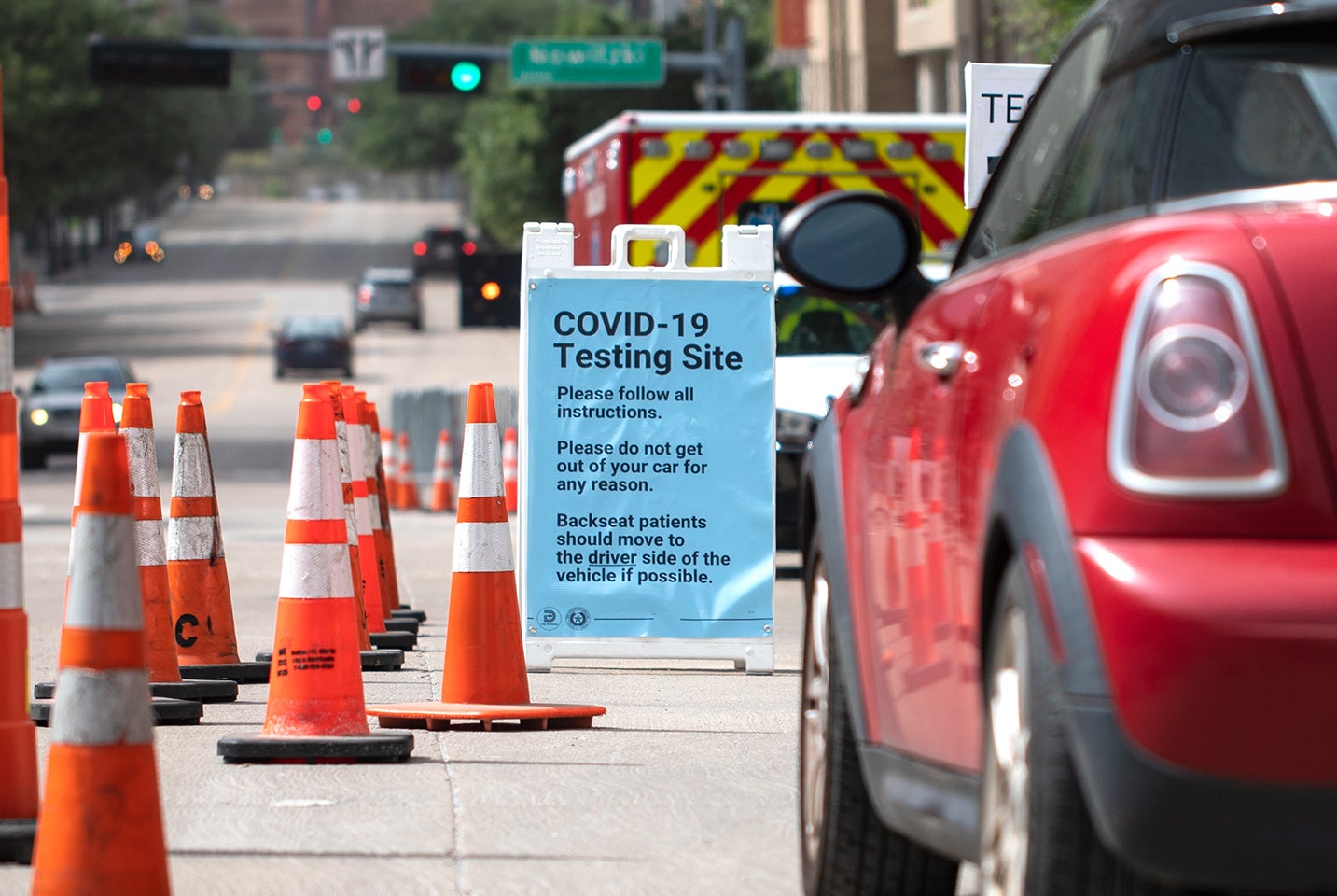 Header photoCars wait in line at a drive up COVID-19 testing site in Dallas, Texas, in June of 2020. (Photo by Montinique Monroe/Getty Images)