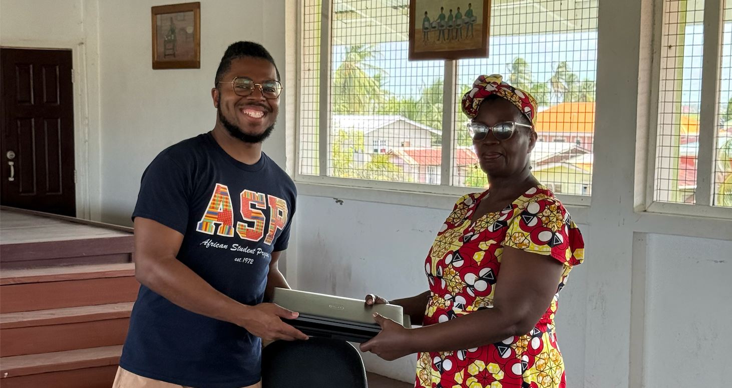 The effort was initiated during ASP’s 2023 trip to the country’s capital city, Georgetown. A conversation during an Emancipation Day celebration between Myrick and a local leader revealed that it often takes over a year to get the technology needed to start community computer labs. During that discussion, Myrick committed to a couple of laptops to jumpstart the initiative.