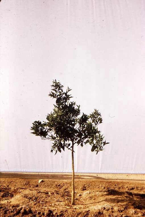 Retarded growth of a 3-yr old navel sweet orange on Troyer citrange citrange experimentally infected with CTLV before being planted in the field (California, USA) – J. M. Wallace