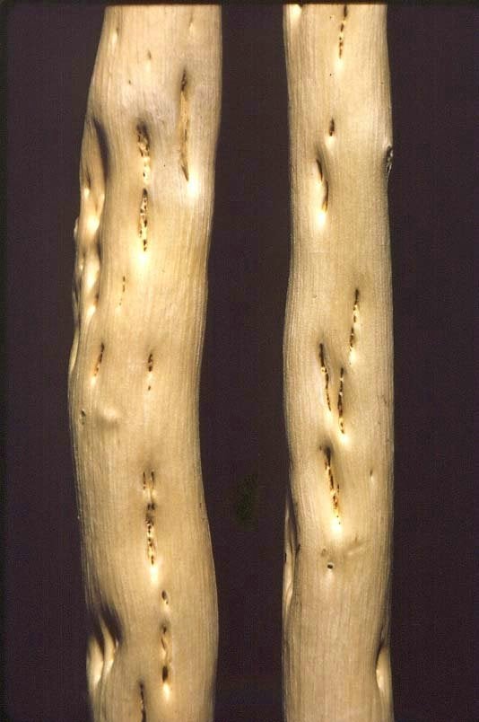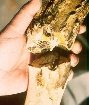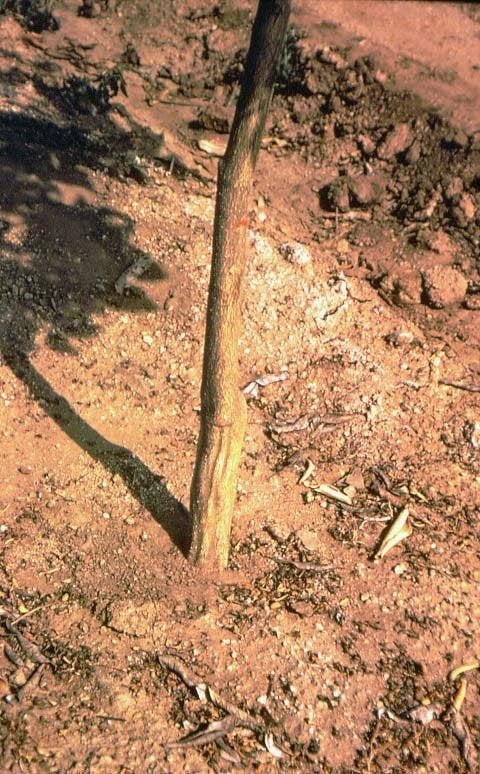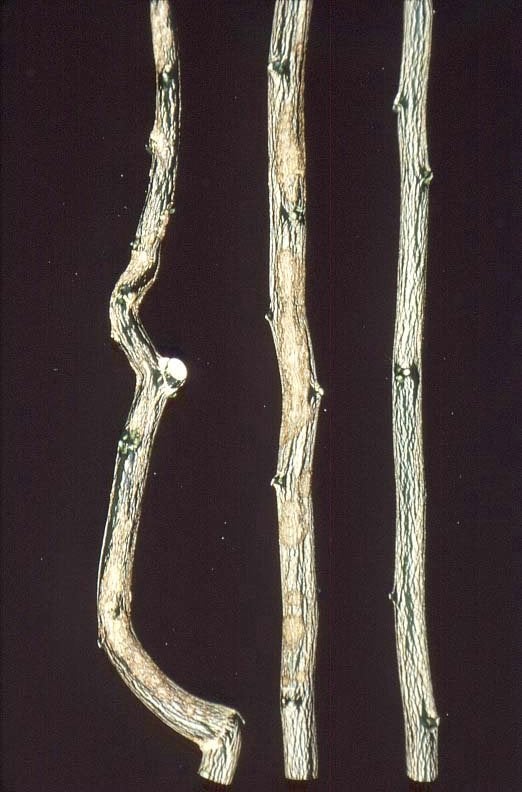 Bark blotches on CTLV-infected Troyer citrange (healthy stem on left) (California, USA) – J. M. Wallace