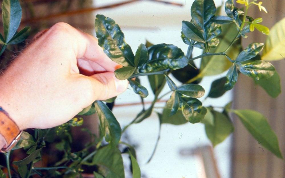Transmission by cutting or pruning tools may have occurred in Texas from a Meyer lemon tree to neighboring Eureka lemon and Cleopatra mandarin trees (da Graça & Skaria, 1996).