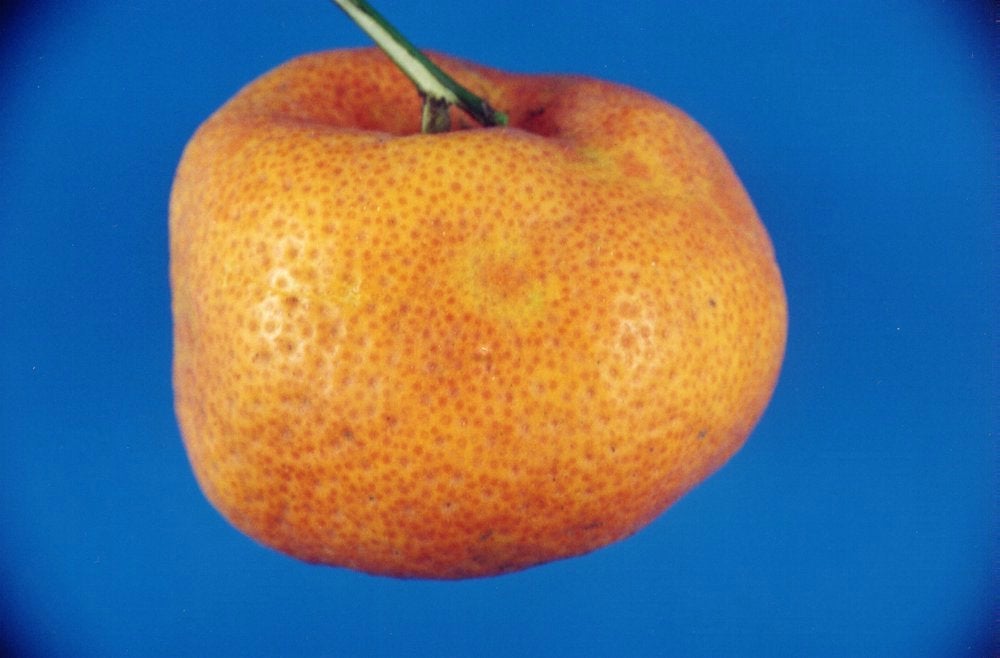 Cleopatra mandarin fruit from a CTLV-infected tree displaying intumescent areas (São Paulo, Brazil) – A. Colariccio