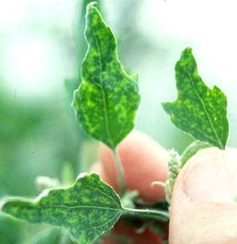 Systemic severe distortion and mottle on leaves Chenopodium quinoa mechanically inoculated with CTLV (California, USA) – C. N. Roistacher