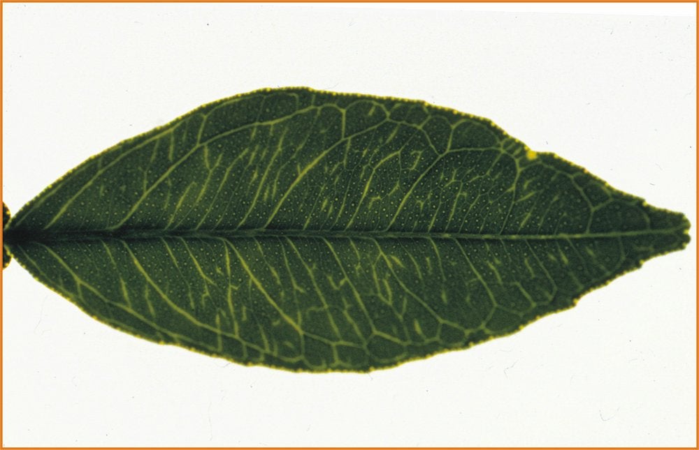 Vein clearing in a Pineapple sweet orange leaf induced by Nagami kumquat SRA-153. (Spain) – L. Galipienso