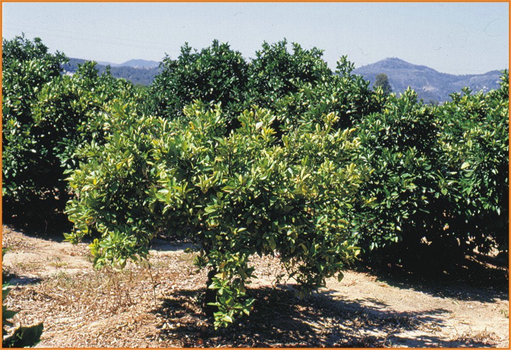 Decline of a 20-year-old Navelina sweet orange on Troyer citrange tree with bud union crease, infected with CLBV. (Spain) – J. Guerri