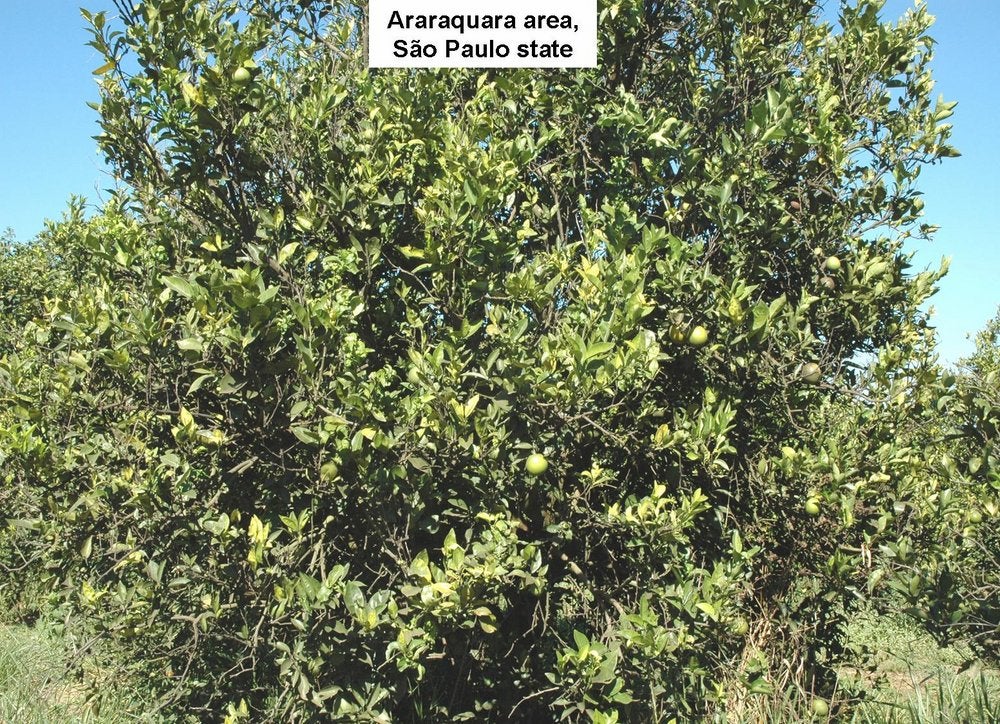 Control of HLB. Example of a citrus farm where control might have been better with more treatments against the psyllid vectors (São Paulo State, Brazil) – J. Belasque |