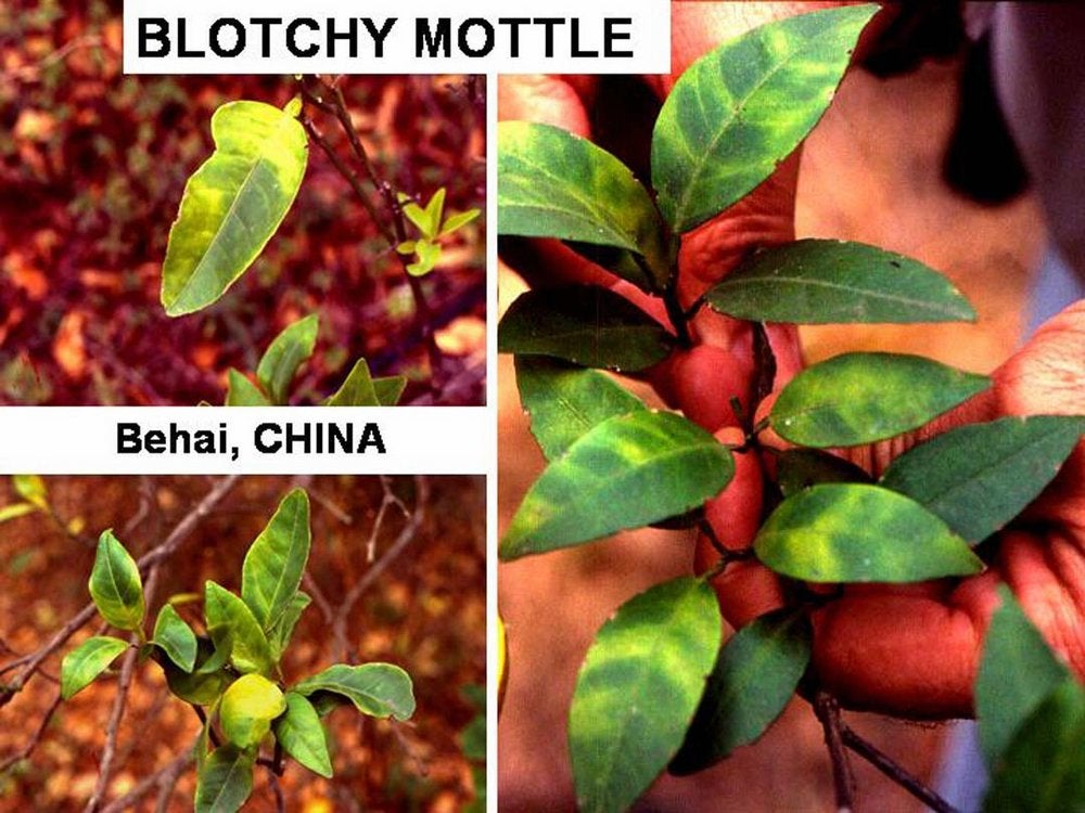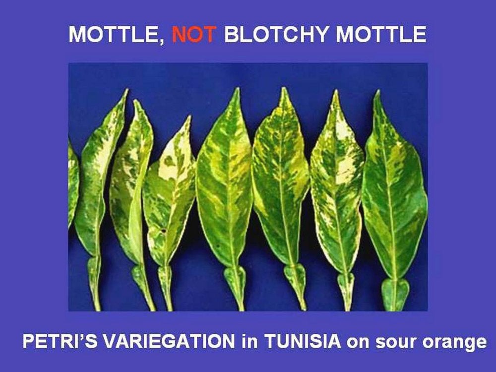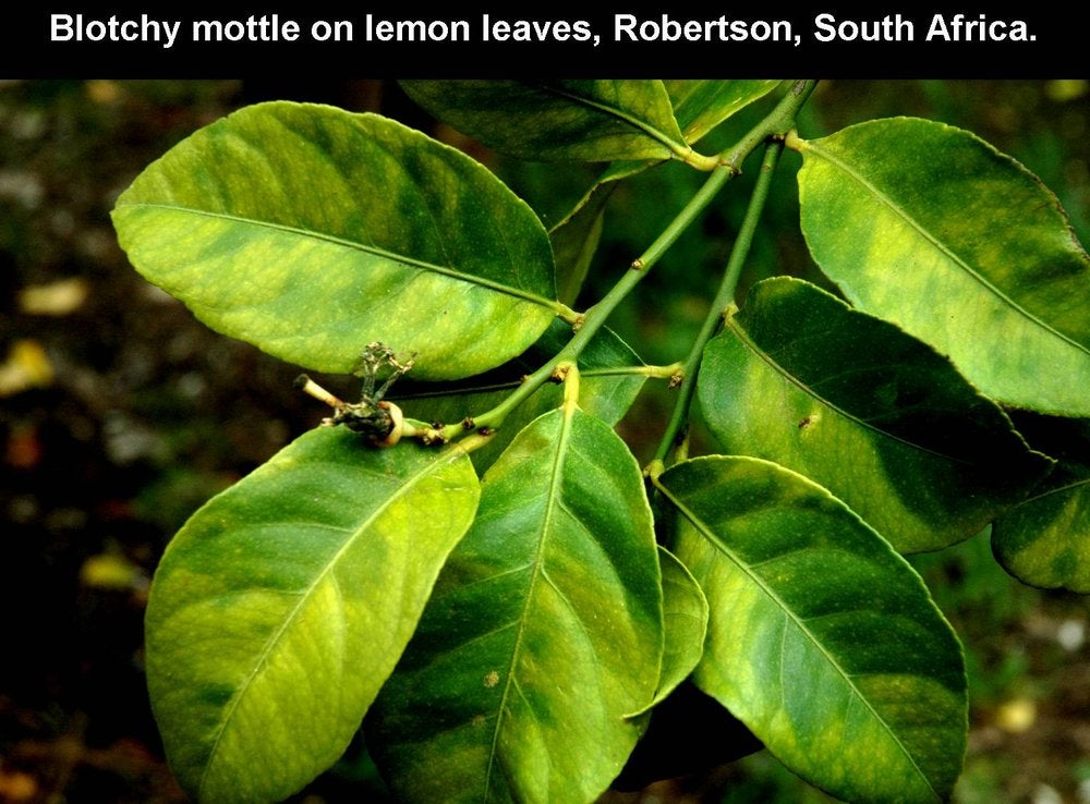 Blotchy mottle on lemon leaves (Robertson, South Africa) – J. M. Bové |