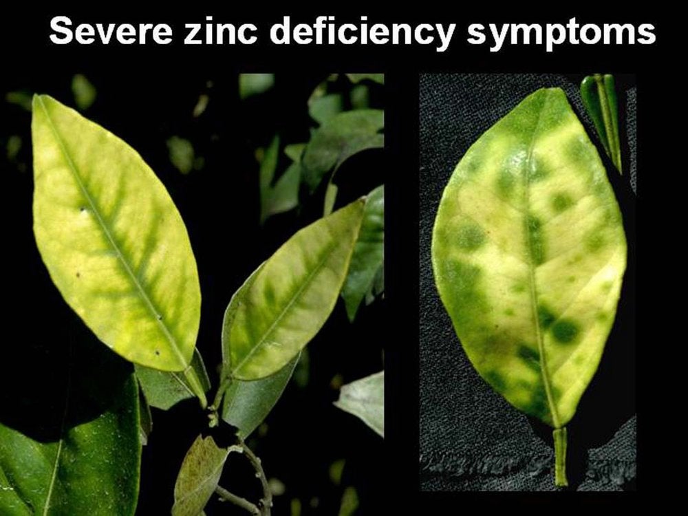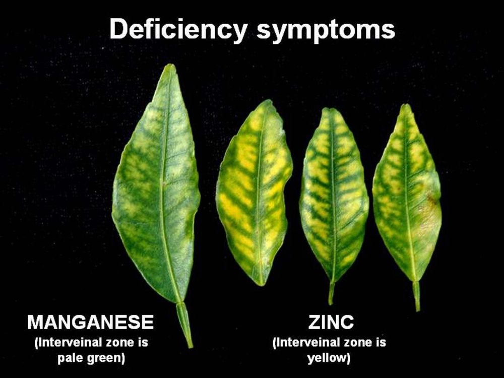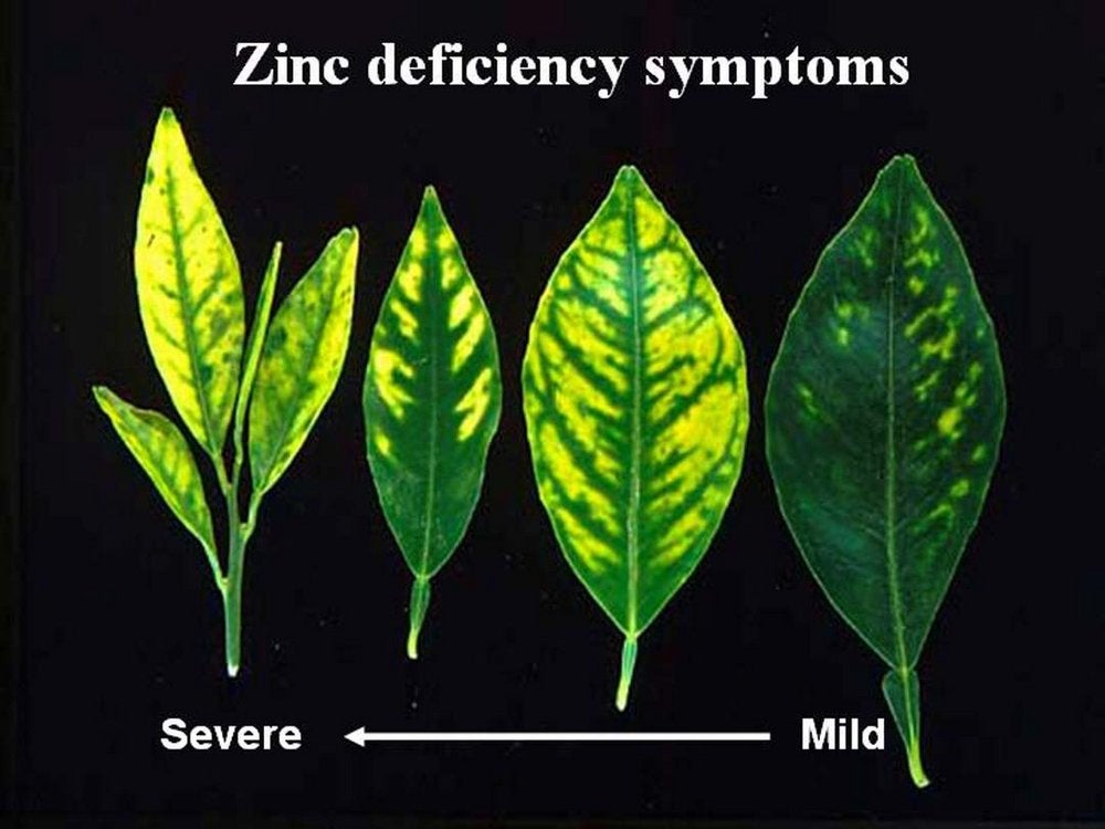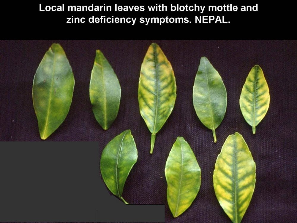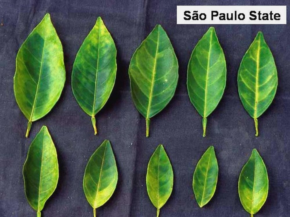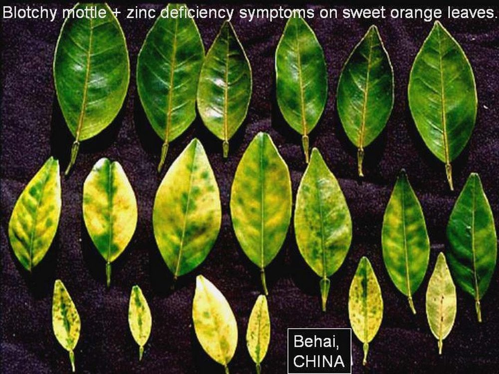 Sweet orange leaves with zinc deficiency symptoms from mild to severe (São Paulo State, Brazil) – J. M. Bové |
