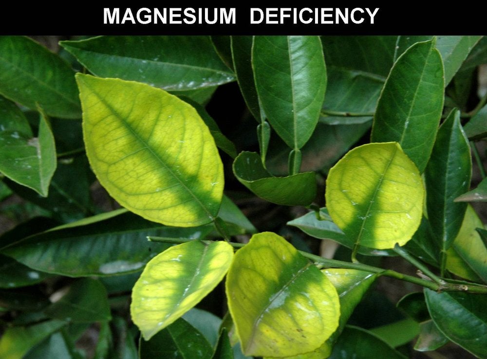 Sweet orange leaves showing magnesium deficiency symptoms, with characteristic central green triangle (São Paulo State, Brazil) – J. M. Bové |