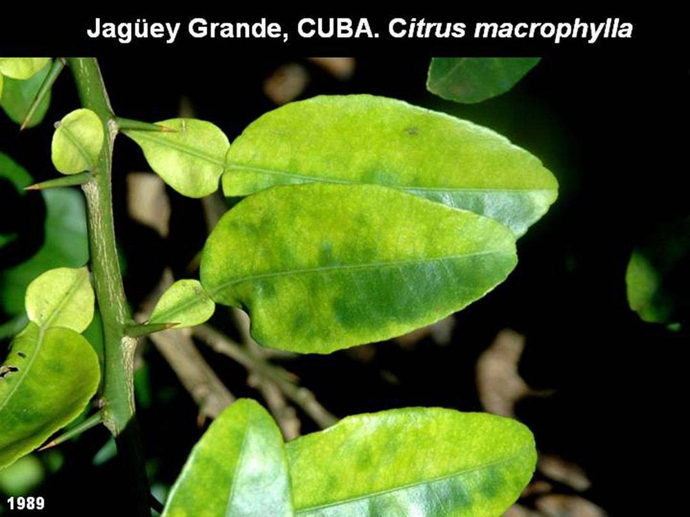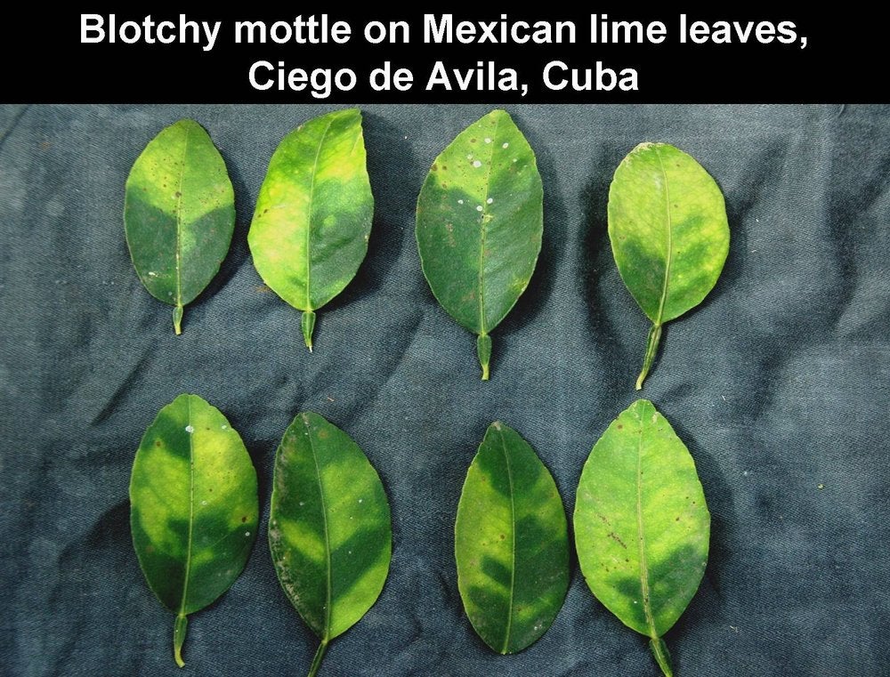 Blotchy mottle on Citrus macrophylla leaves (Jagüey Grand, Cuba) – J. M. Bové |