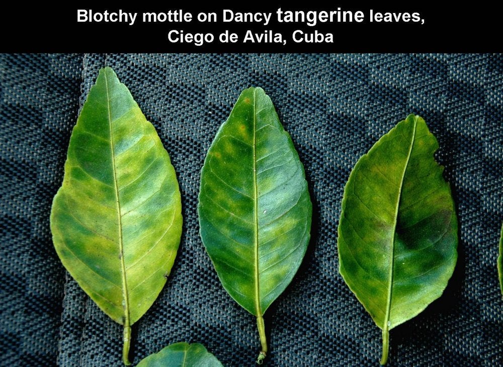 Blotchy mottle on Citrus volkameriana leaves (Jagüey Grand, Cuba) – J. M. Bové |