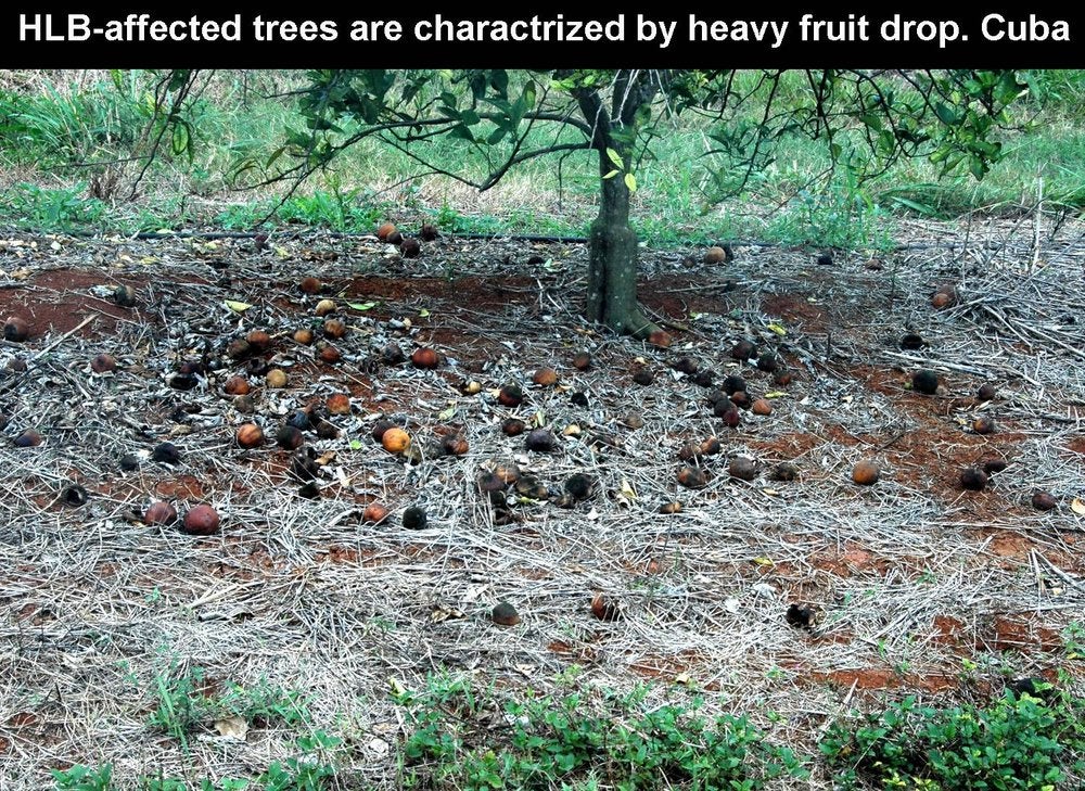 Fruit-drop is characteristic of HLB-affected sweet orange trees (Cuba) – J. M. Bové |