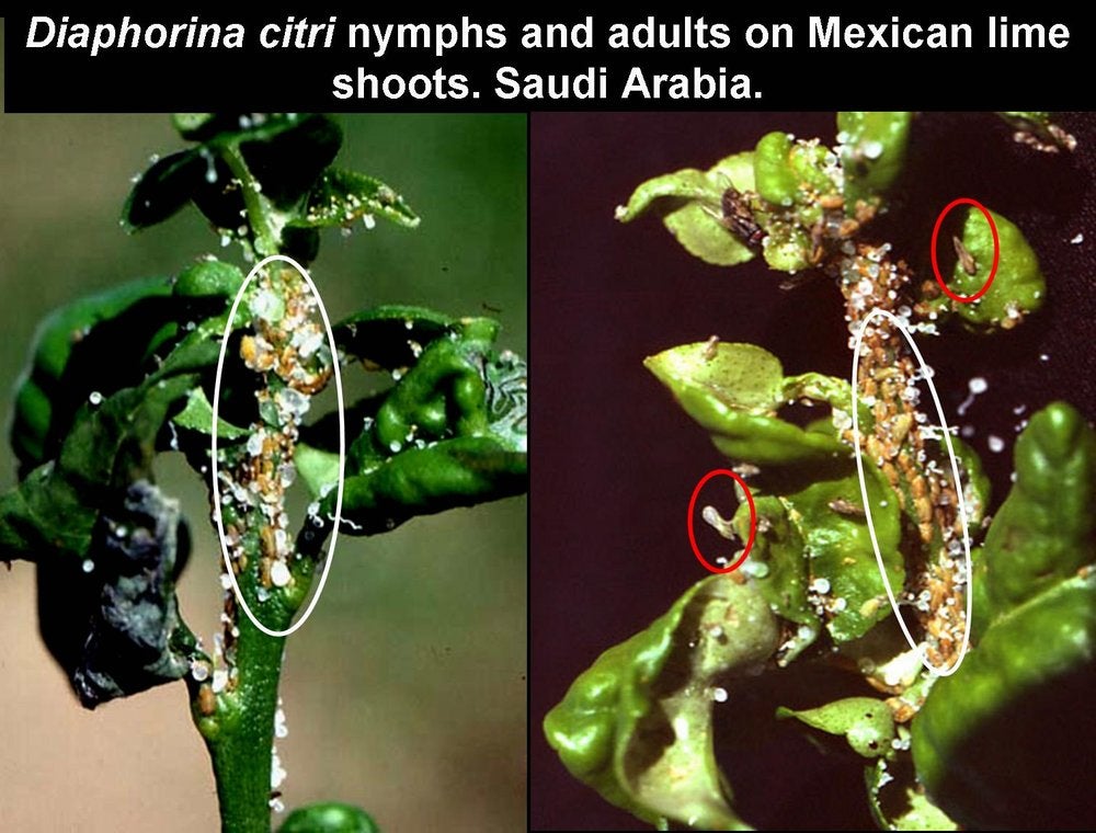 - In North America, D. citri is present in the Rio Grande Valley of Texas (USA) since 2001, and in the Yucatan peninsula of Mexico since 2002. By 2008, It was found all over Mexico, and in June 2008 it was seen in Tijuana, at the border between Baja California, Mexico, and California, USA. By the end of 2008, it was eventually seen in California, and it was present throughout the Southern U.S.A, including Texas, Alabama, Georgia, Mississippi, South Carolina, without omitting Florida and Louisiana where both D. citri and Ca. L. asiaticus are present.