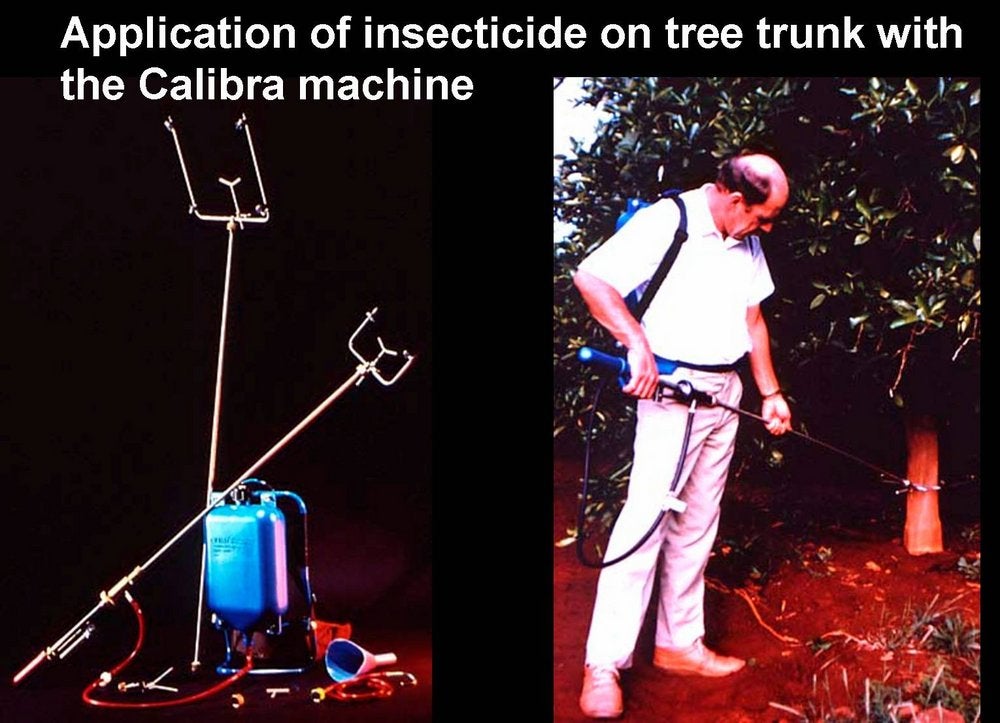 Application of insecticide on tree trunks with the “Calibra” machine (South Africa) – H. Le Roux |