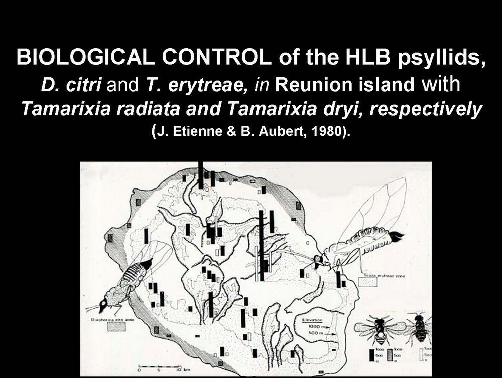 Biological control of the psyllid vectors of HLB, Diaphorina citri and Trioza erytreae, in Reunion island with Tamarixia radiata and Tamarixia dryi, respectively (Reunion island, France) – J. Etienne and B. Aubert |