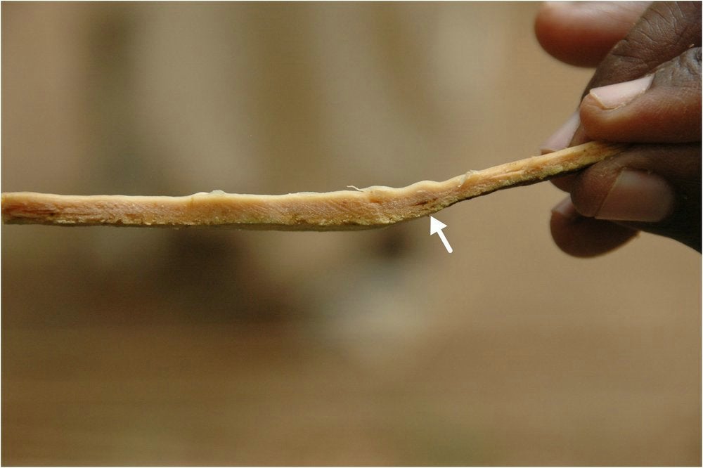 Strip of bark removed from the tree of KD. 02. Note the presence of gum deposits. (Government nursery, Kitiab, Sudan) – N. Duran-Vila