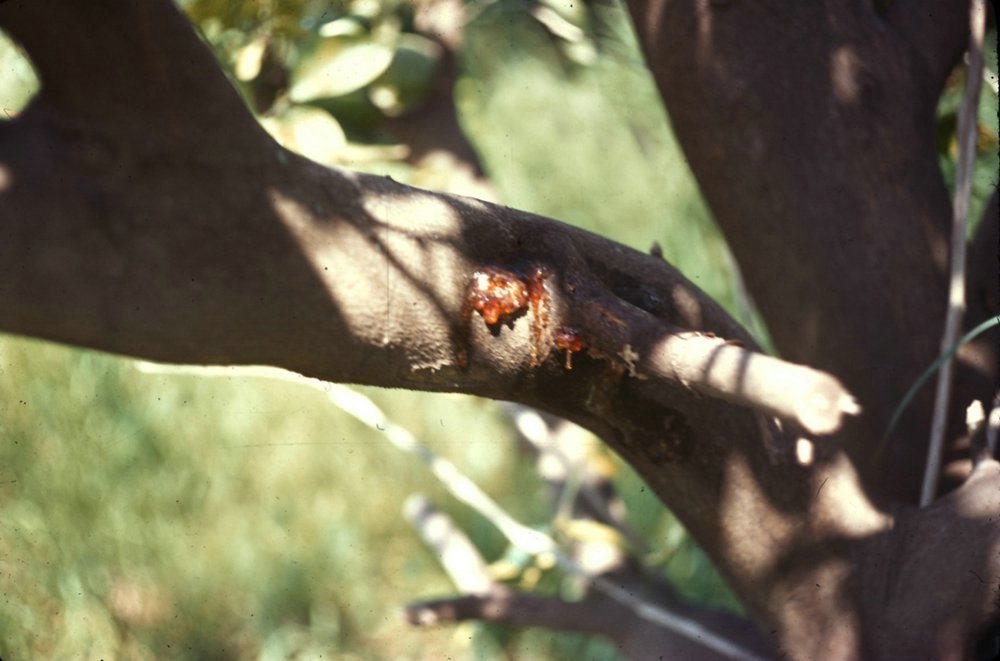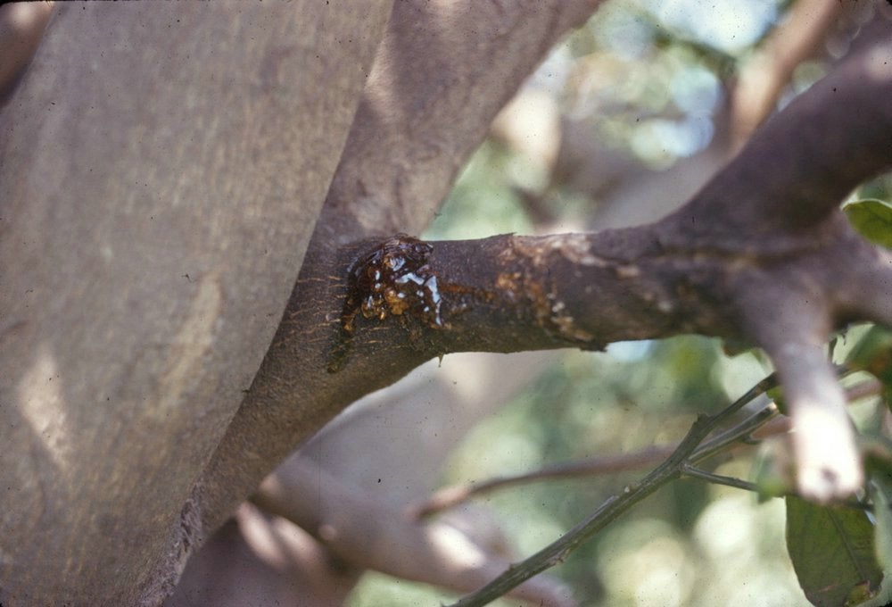 Gumming of the scaffold limb of a grapefruit tree (Texas, USA) Photo by L. W. Timmer |