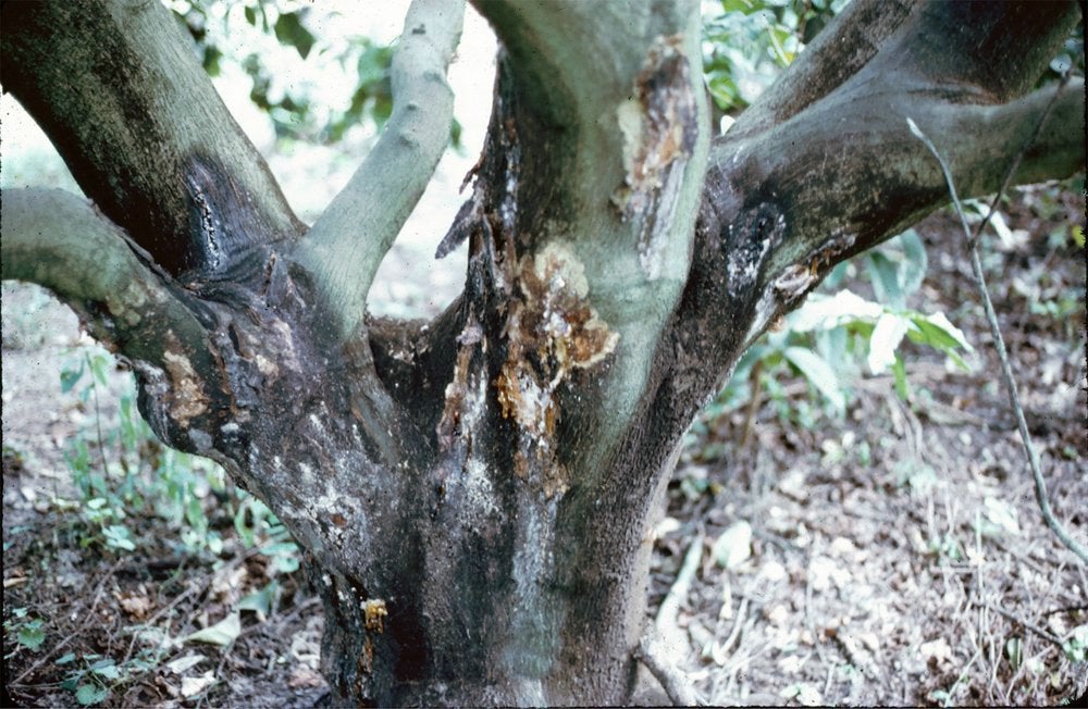 Severe Rio Grand gummosis on a grapefruit tree in Florida (Florida, USA) Photo by R. R. Pelosi. |