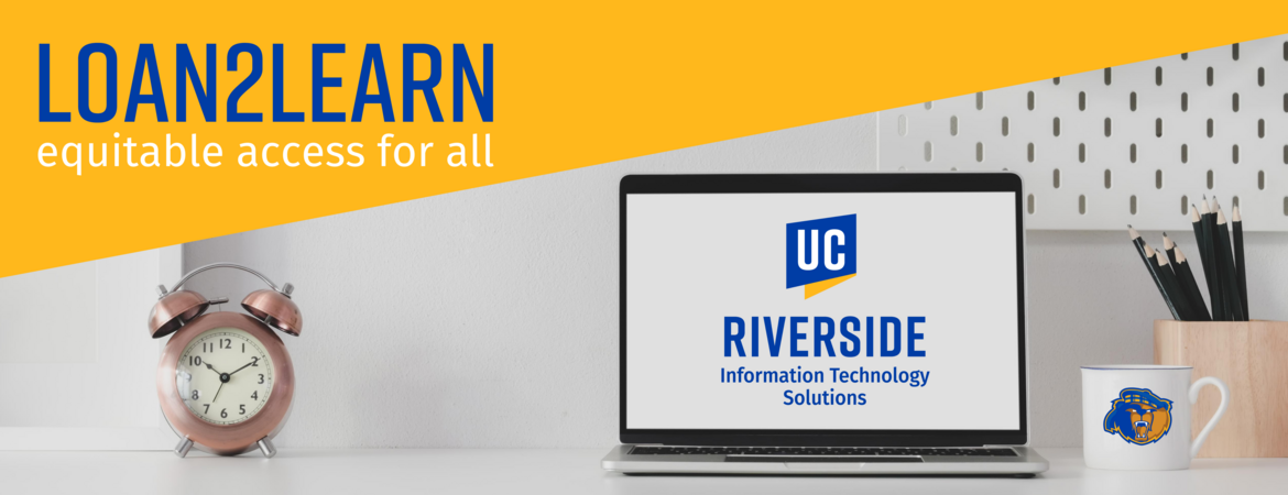 UCR Information Technology Solutions (ITS) is pleased to announce that it has enhanced and made permanent the Loan2Learn (L2L) Program for students in need of off-campus access to a learning device. ITS is currently accepting applications for the 2020 Fall quarter.