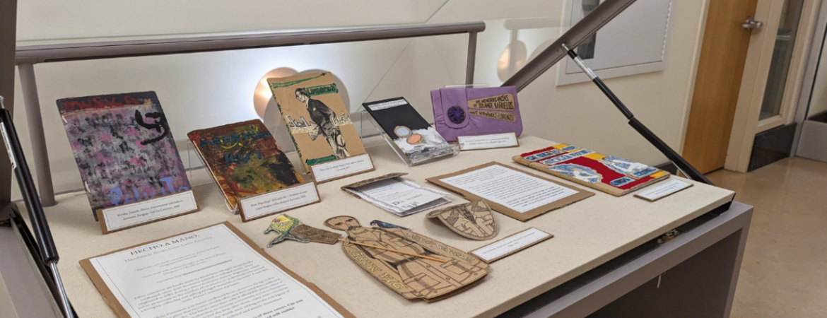 The exhibit, titled Hecho a Mano, features a collection of unique and creative books made from recycled materials such as cardboard, paper, and found objects.