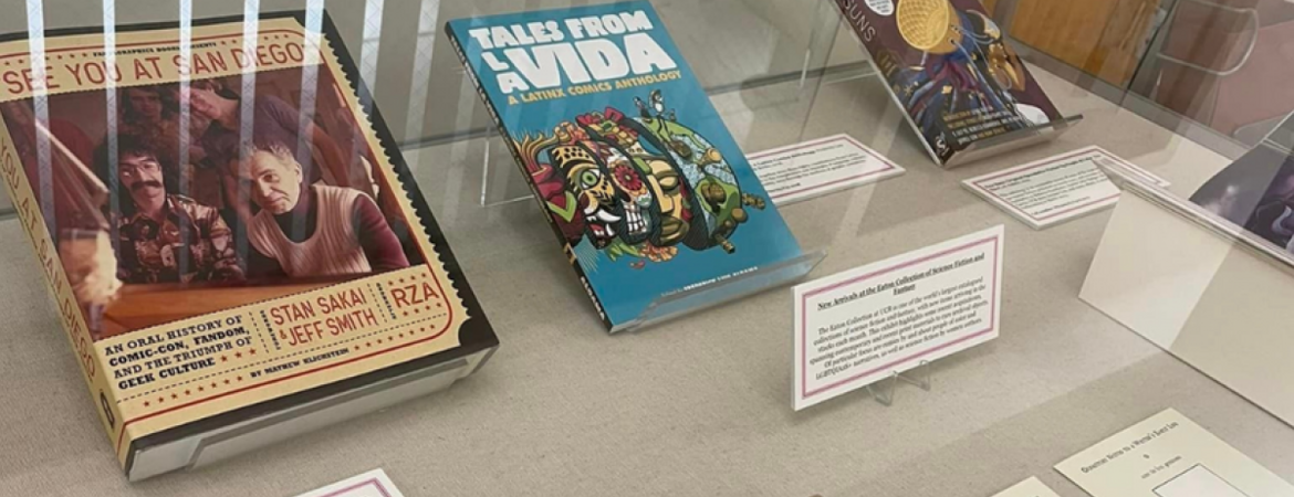 Our new pop-up exhibit features recent acquisitions for the Eaton Collection - including Afrofuturism, Latinx comics, and more! Come visit us during winter quarter on the 4th floor of the Rivera Library from 10 a.m. - 4 p.m. in Special Collections & University Archives.