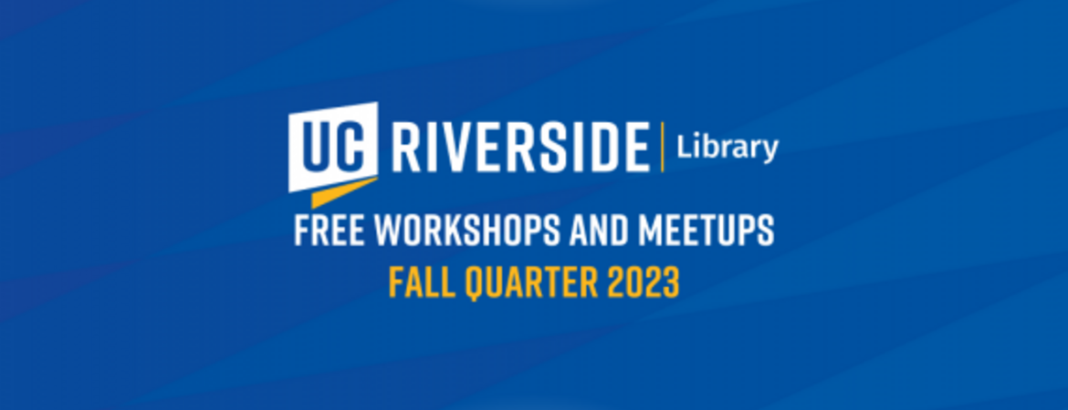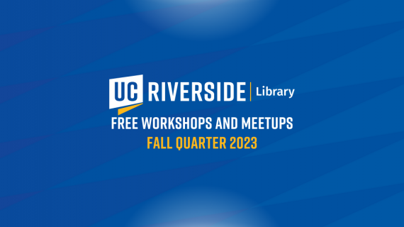 The UCR Library offers a variety of free workshops and meetups every quarter. Check out what the Library is offering during fall quarter 2023 below. If you're interested, head over to the UCR Library's Eventbrite page or click the individual links below for more information and to register (make sure to register with your UCR email address).