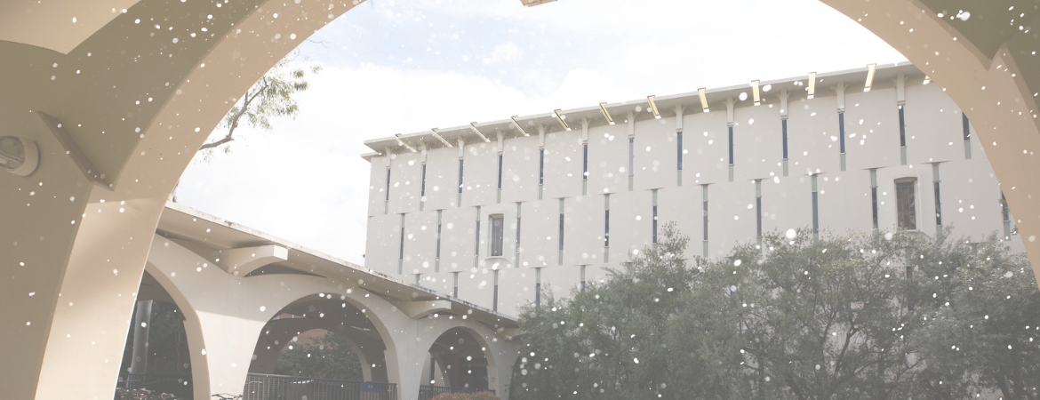 First image: Rivera Library seen under the arches. (UCR/Stan Lim)