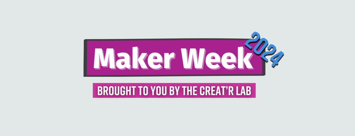 The UCR Library’s Creat’R Lab is excited to announce the 2nd Annual Maker Week, taking place Monday, April 22 - Friday, April 26, 2024.