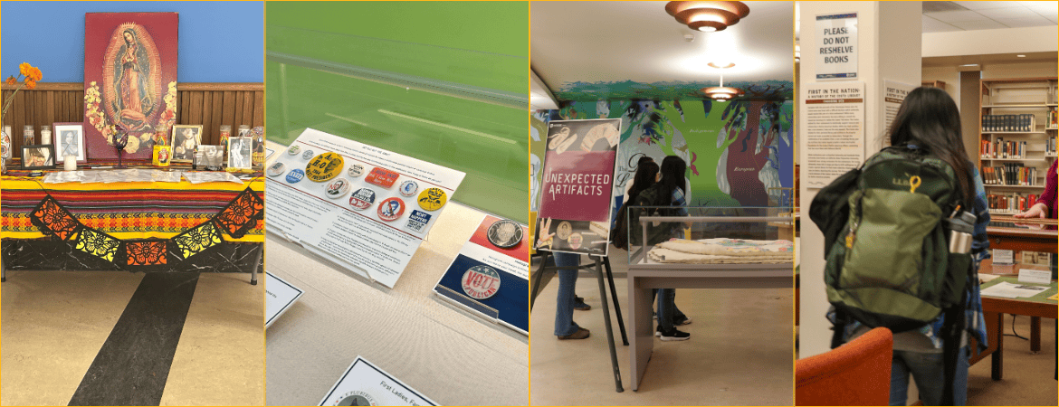 Explore the unique and thought-provoking exhibits and displays currently on view in the Tomás Rivera Library. From political memorabilia to rare artifacts, visit soon before they're gone!