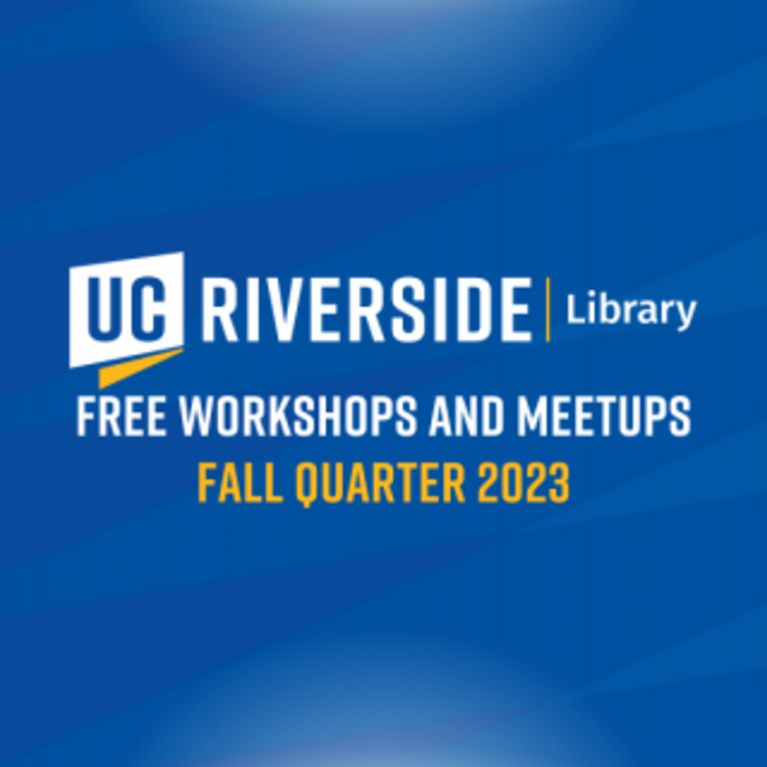 The UCR Library offers a variety of free workshops and meetups every quarter. Check out what the Library is offering during fall quarter 2023 below. If you're interested, head over to the UCR Library's Eventbrite page or click the individual links below for more information and to register (make sure to register with your UCR...