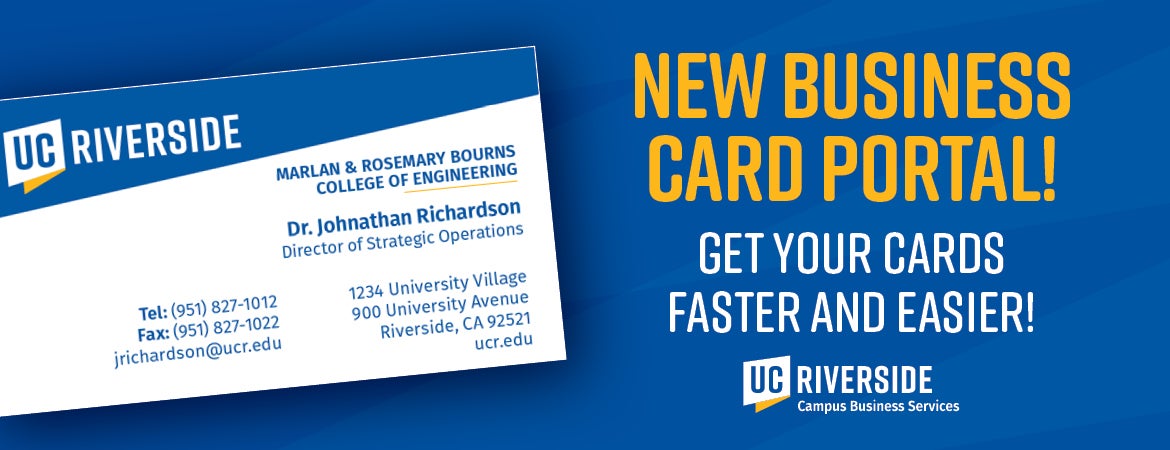 Campus Business Services (CBS) is pleased to announce our new and improved process for ordering UCR Business Cards!