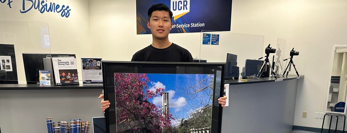 Li received a $75 voucher to the UCR Bookstore, his framed photo, and a free 2023-24 R’Card.