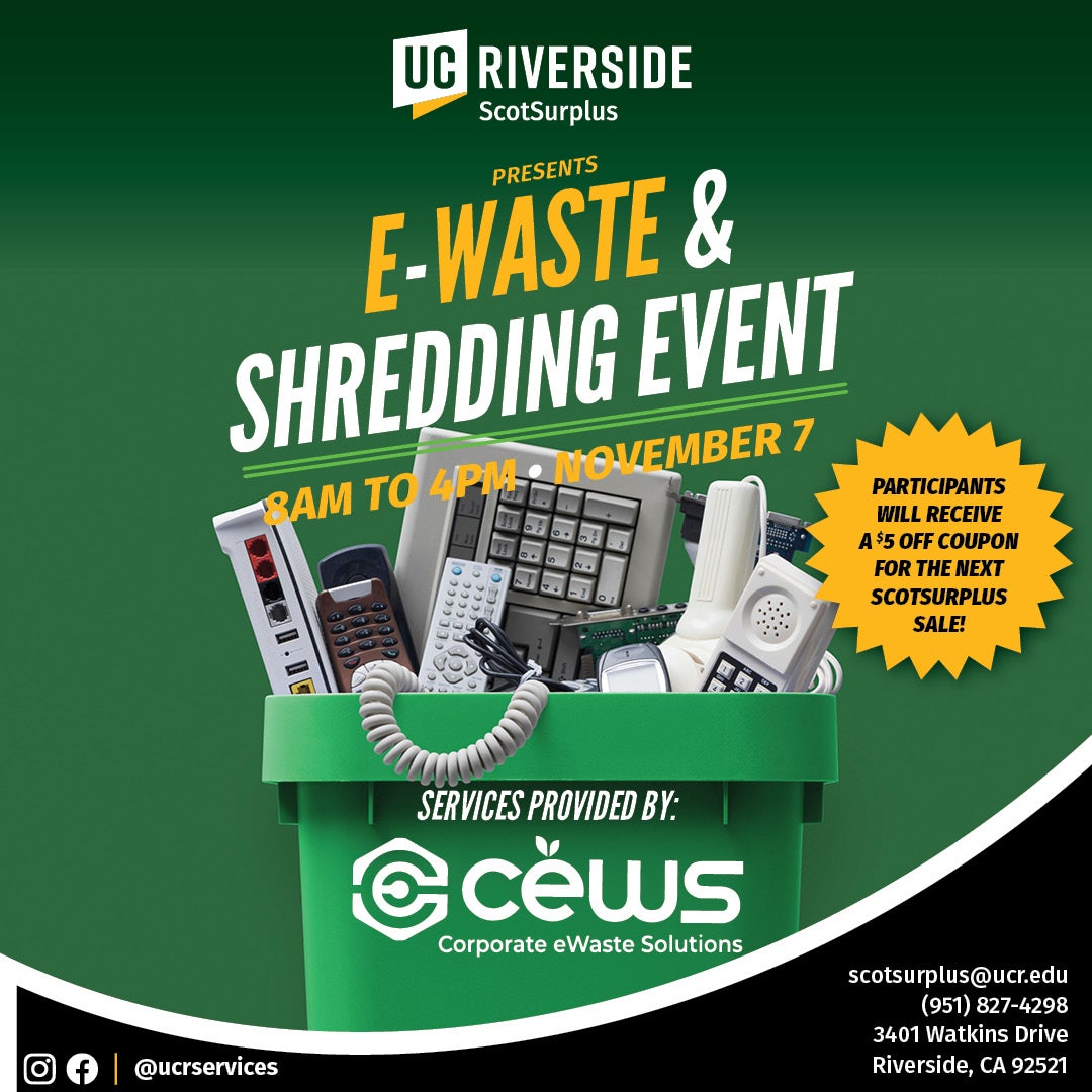 The items can belong to an individual or UCR department. The services are being provided by CEWS Corporate eWaste Solutions.