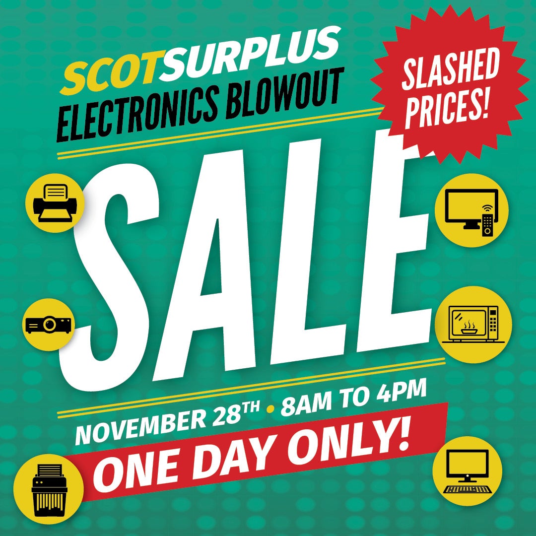 ScotSurplus has announced a one-day only Electronics Blowout Sale. The sale is open to the public from 8 am to 4 pm on November 28.