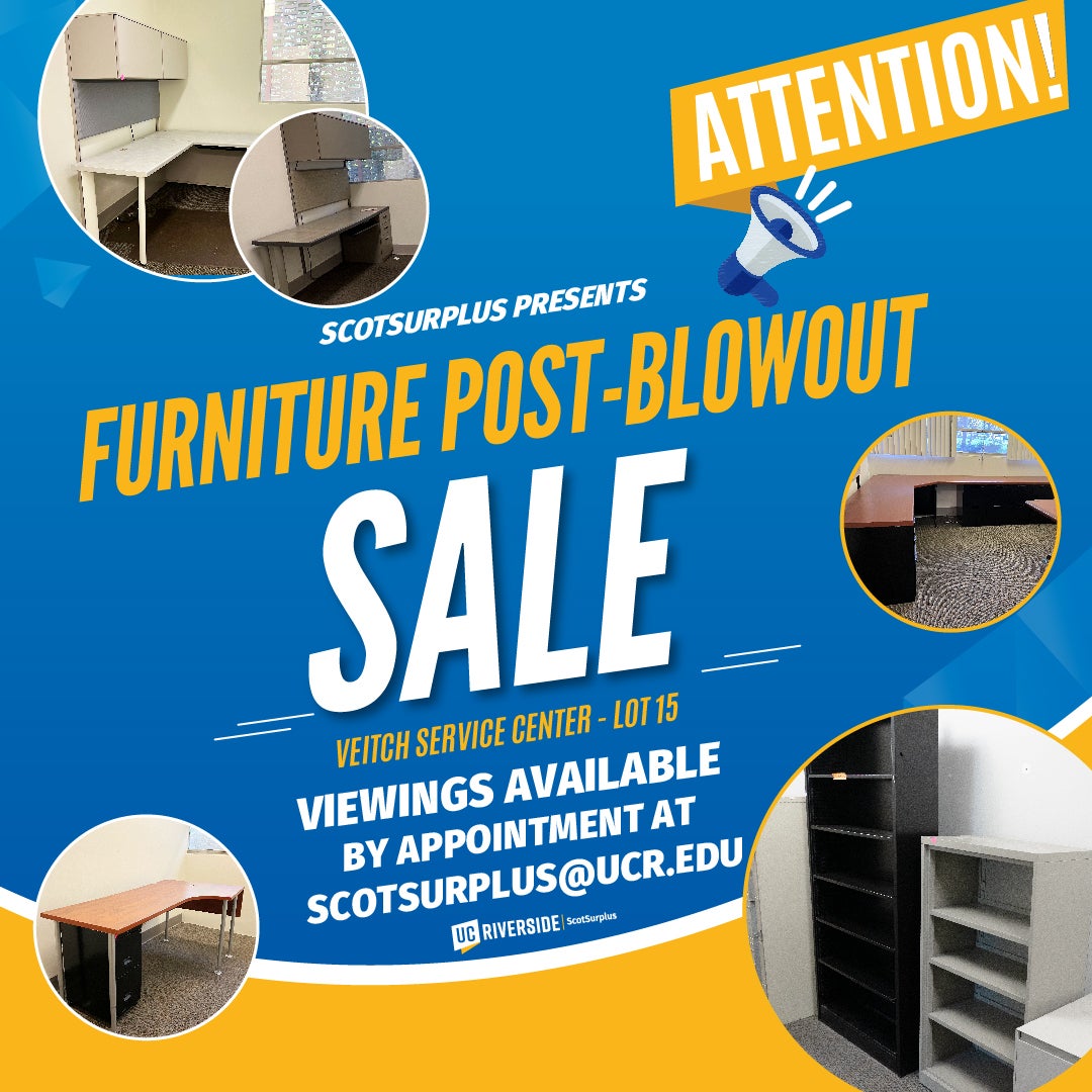 With the opening of the new UCR Student Health and Counseling Center earlier this academic year, ScotSurplus is excited to continue offering a Furniture Post-Blowout sale featuring items from the former Student Health Services Veitch Student Center.