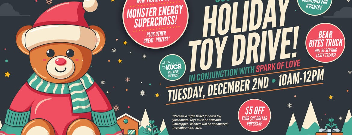 Help us spread holiday cheer AND support our Highlander and Riverside community! Bring a new, unwrapped toy or R’Pantry donation — and receive a $5 ScotSurplus coupon to use on December 2nd.