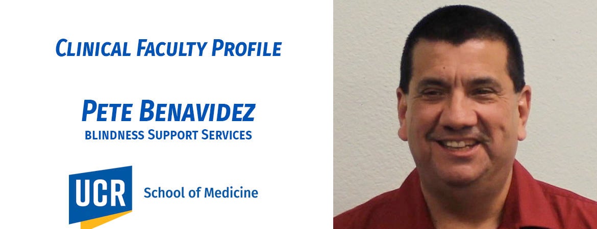 Benavidez, who has led Blindness Support Services (BSS) since 1994, will be lecturing UCR School of Medicine students as part of the Careers in Medicine Program Special Lecture Series. The series brings guest speakers to discuss important topics for professional development, medicine, and community.