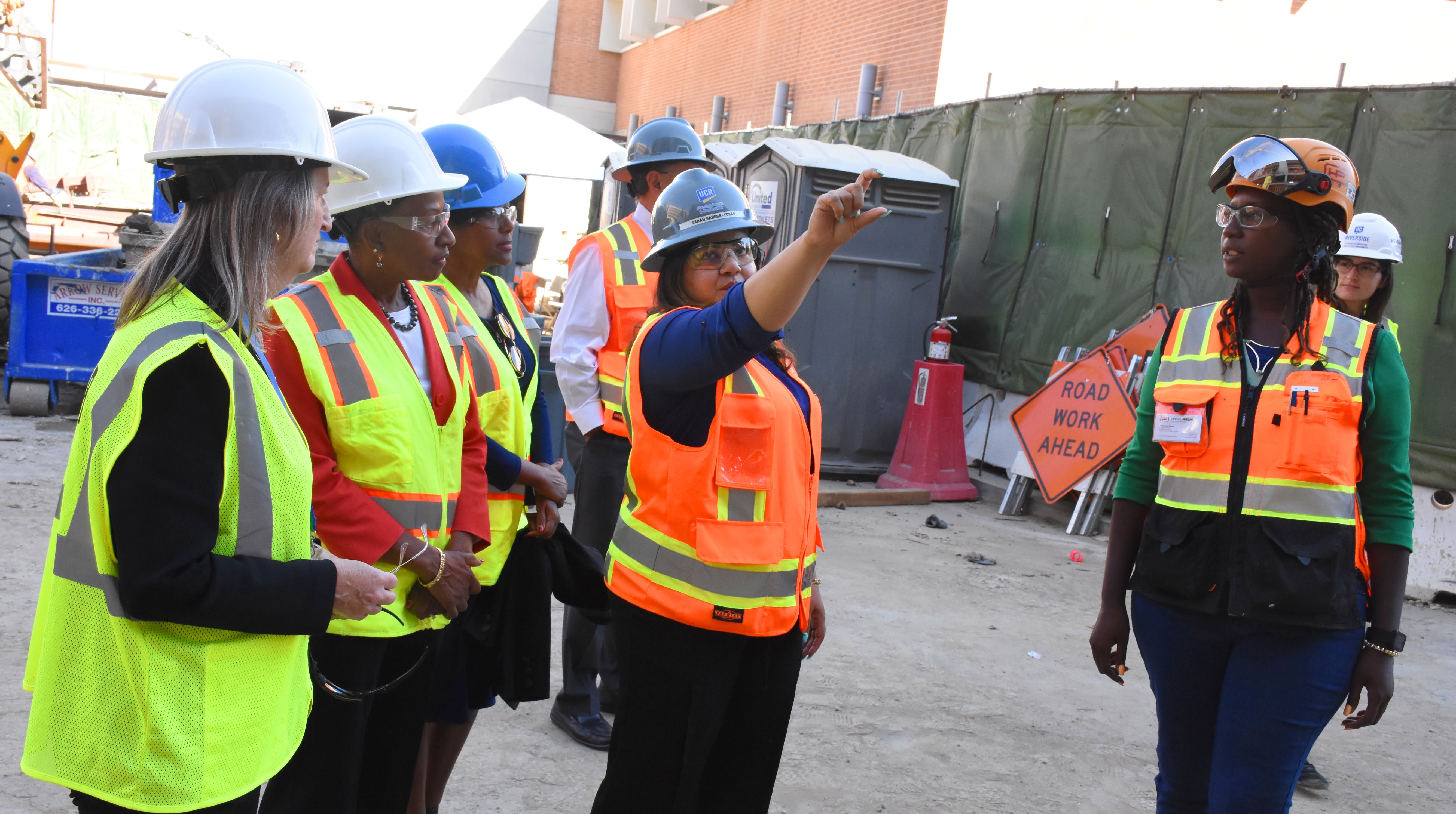 Sarah Sabera-Turab, a project manager with the Office of Planning, Design and Construction, helped lead the tour. “It’s an honor to work on this project and to see people from the community work on a building whose purpose is for the community,” she said. Sabera-Turab added that it was exciting to show the building to its future occupants. “I think there was a collective surprise on the nature of the views that it offers to the campus.”