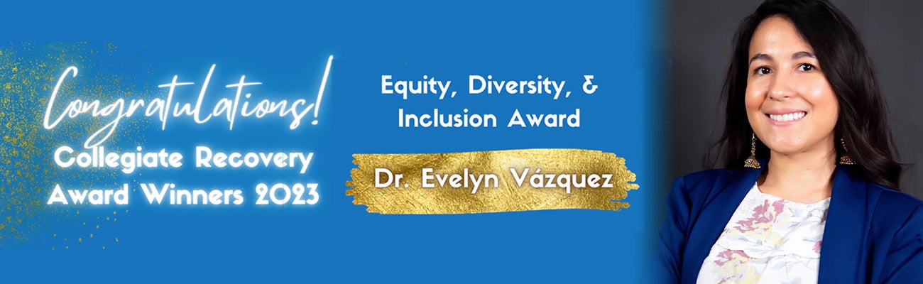 “This award was established to honor an individual who has advanced equity, inclusion, and social justice in the field of collegiate recovery,” said Dr. Mark Wolfson. “This is exactly what Dr. Vázquez done in her scholarship, such as her groundbreaking article on the need to address racial and ethnic diversity in college and university recovery programs.”