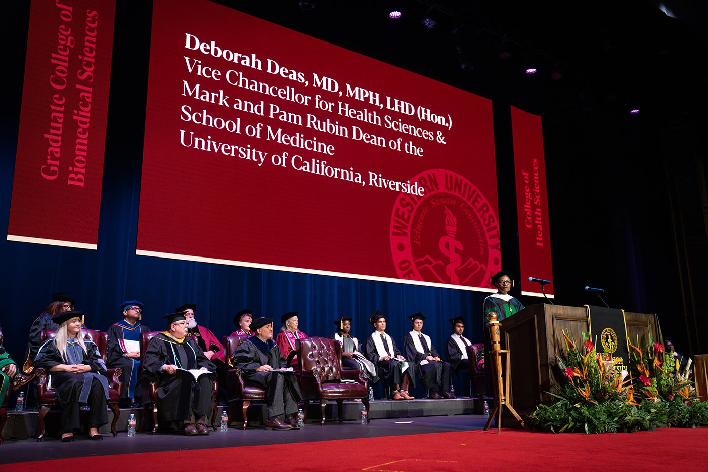 Deas was surprised with an honorary doctorate from Western University of Health Sciences on Wednesday, May 17, during the commencement ceremonies for the College of Health Sciences and Graduate College of Biomedical Sciences, where she delivered the keynote address.
