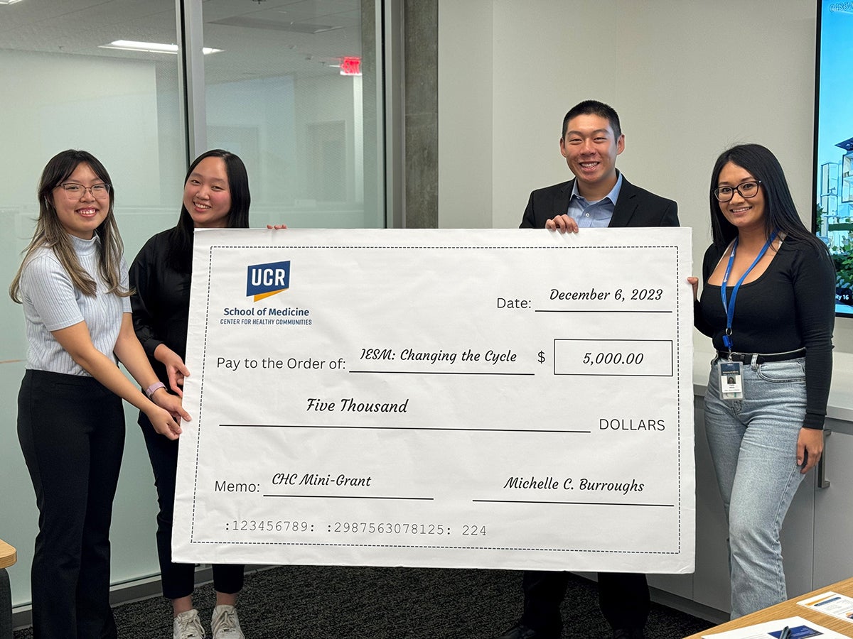 "We are immensely honored to be a recipient of the UCR School of Medicine: Center for Healthy Communities mini-grant this year," said Anh Voong, a third-year biology major at UCR and project lead and grant writer for IESM.